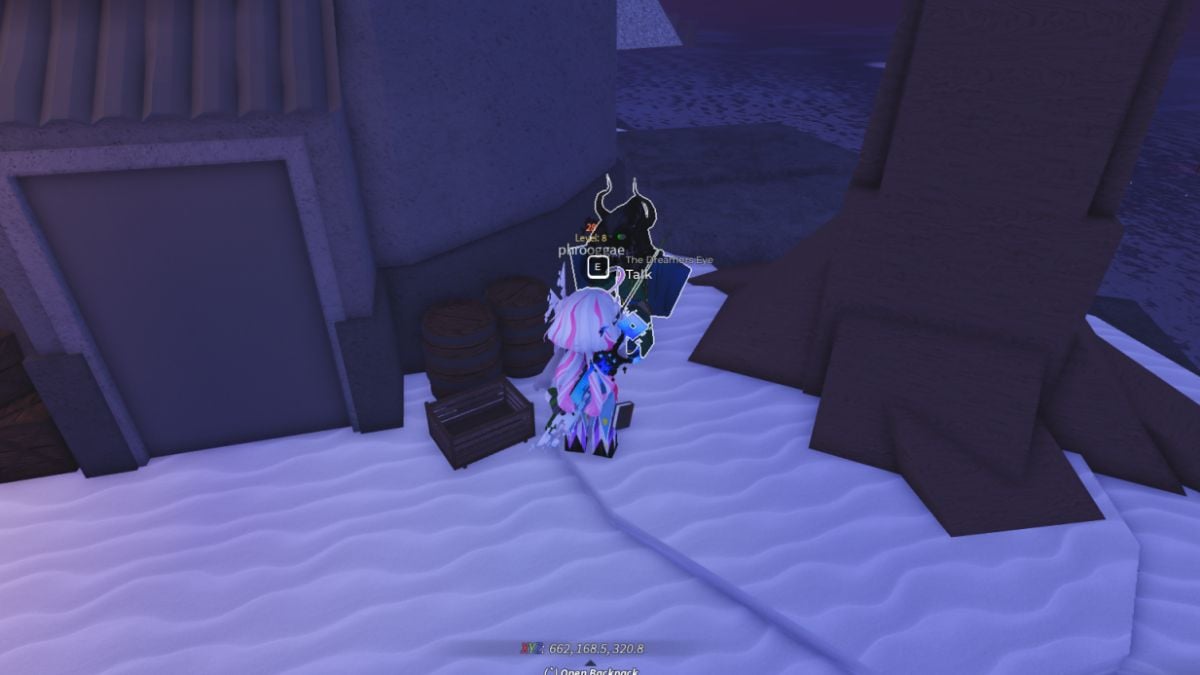 Now, spawn into Moosewood, climb up the ladder and go towards the lighthouse where you will find the Dreamers Eye, an NPC that starts the Mega Token quest.