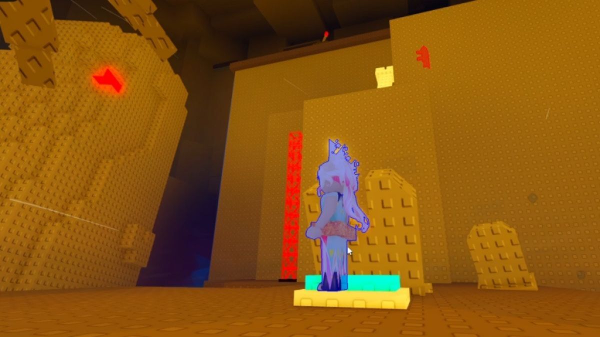 The button section can be very annoying until you figure it out, since the only instruction you get is to press the buttons in a specific order. Your goal is to find four blue buttons in four attempts so that you can cross the pit. You do this by pressing on random buttons. If you make a mistake on the fourth attempt, you will respawn and the puzzle will reset.